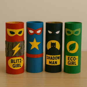 Vier Rollen, vier Helden: Blitz-Girl, Shadow-Man, Eco-Girl, Star-Boy. Kinder erfinden eigene Figuren mit Symbolen, Farben und Namen. Aus Papier, Moosgummi und Fantasie entstehen Laternen, die leuchten und Mut machen.